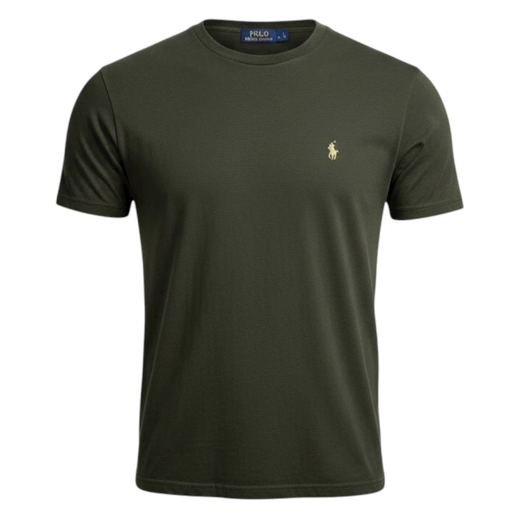Camiseta Básica Ralph Lauren Masculina Verde Exército Pony Creme
