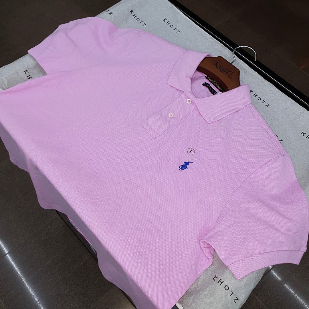 Polo Ralph Lauren Masculina Rosa Claro Pony Azul